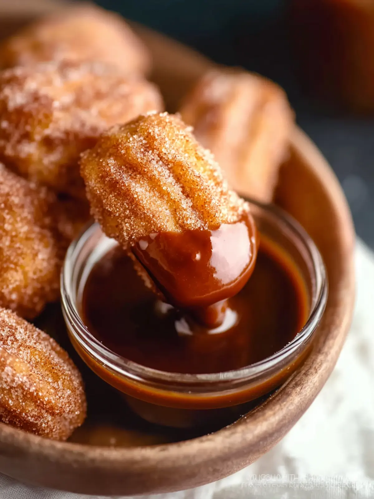 Imagine your air fryer churro bites freshly made and dipped in rich, melted chocolate! Simply melt dark or milk chocolate and dip each bite halfway. For added flair, sprinkle with crushed nuts or sprinkles before the chocolate sets.