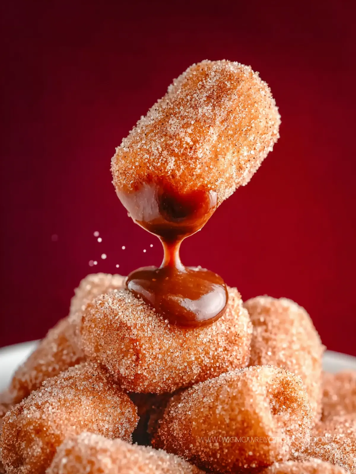For that classic churro taste, mix granulated sugar with cinnamon before placing the hot bites in it. This helps create a sweet outer layer that makes them irresistibly delicious.