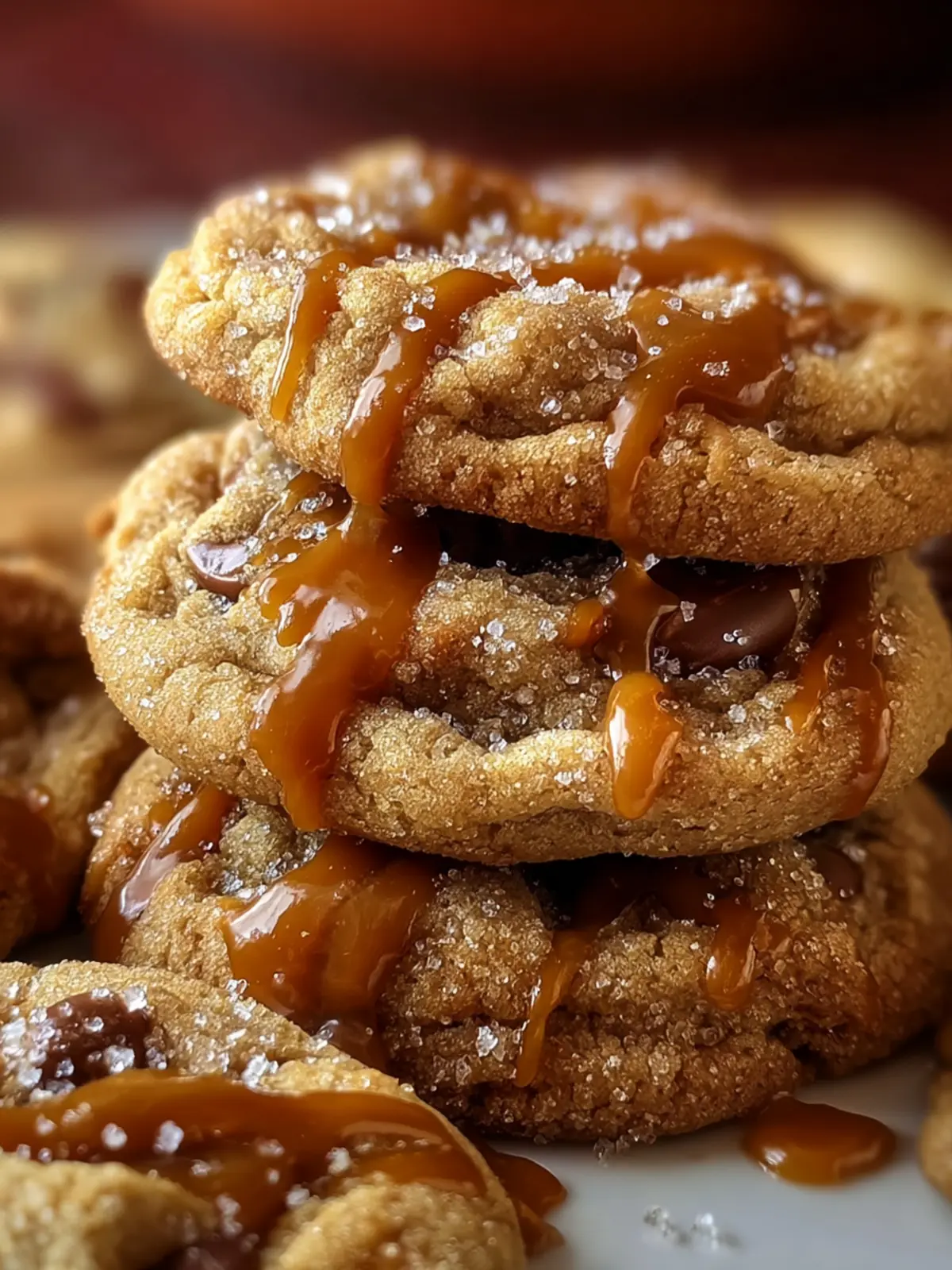 What sets these cookies apart is their texture. Crispy edges give way to a chewy center, making each bite a delightful adventure. Not only do they look gorgeous with those swirls of caramel peeking out, but they also snap for that satisfying crunch before yielding to the chewy goodness.
