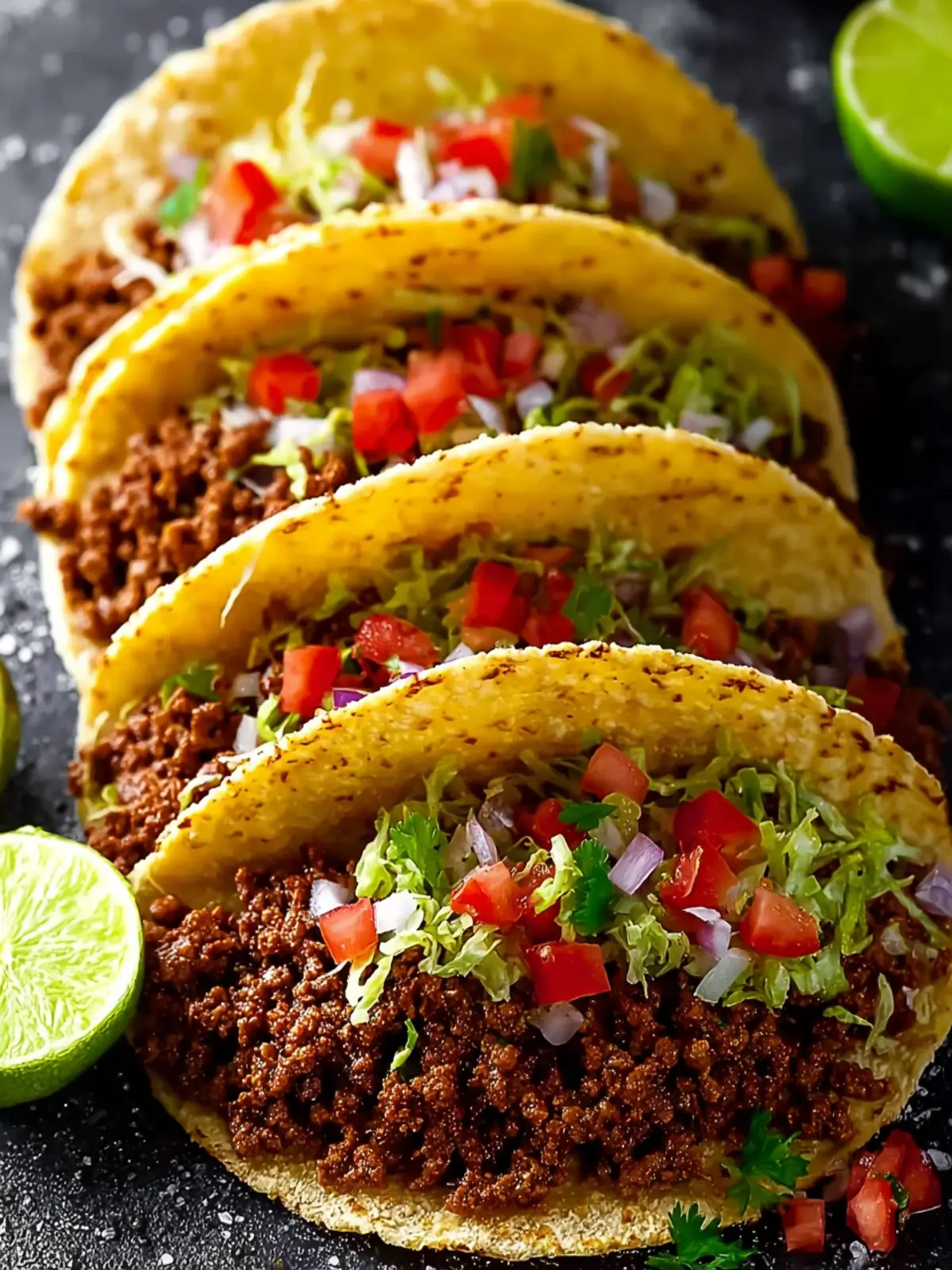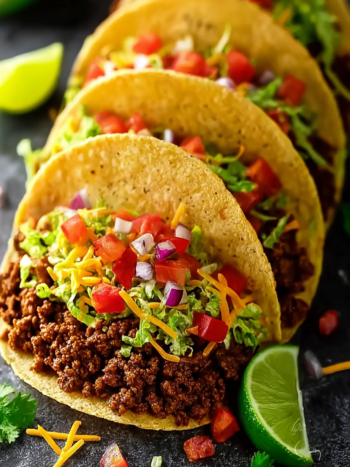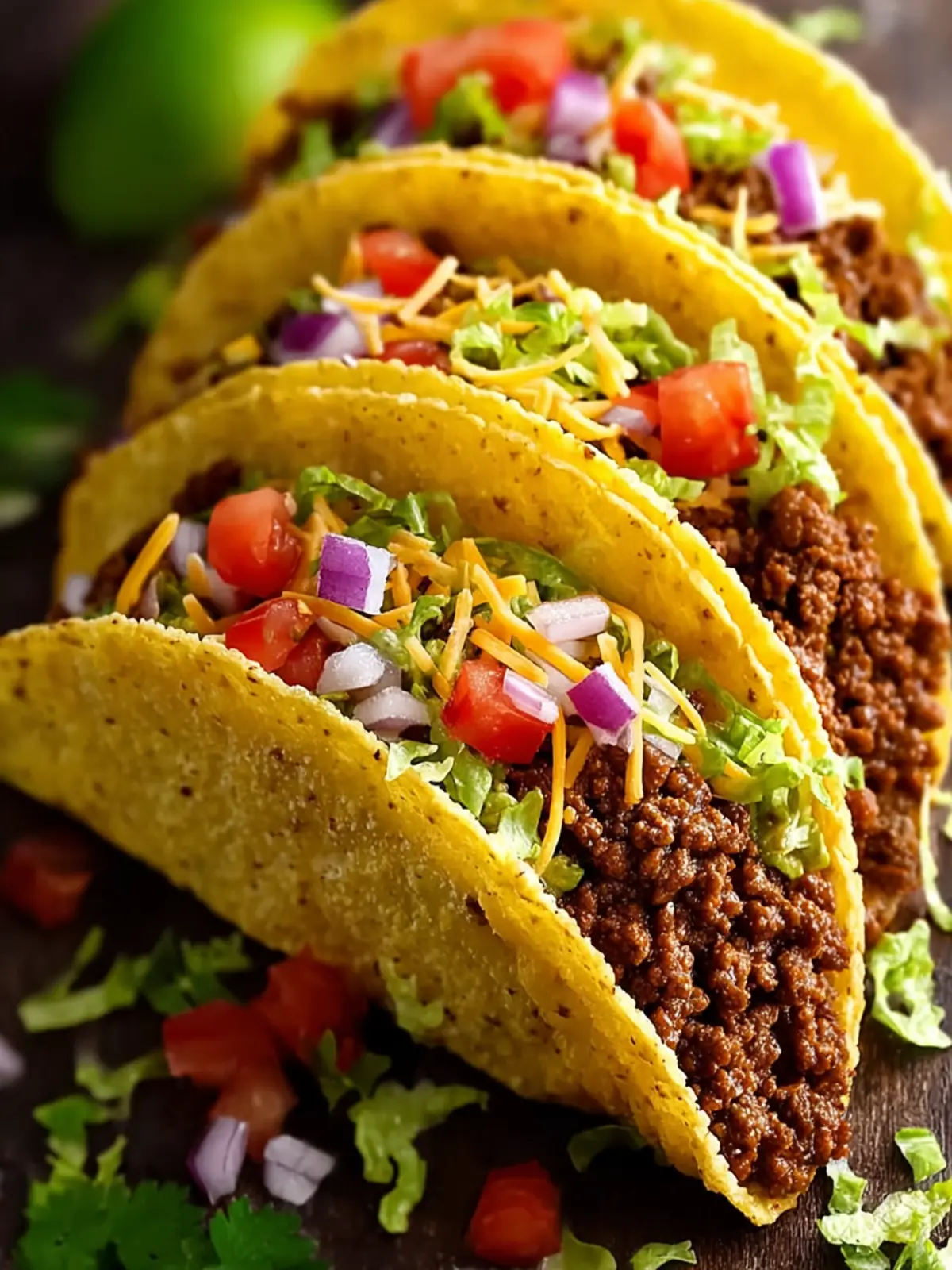 Shredded Lettuce and Cheddar Cheese: These fresh toppings bring crispness and creaminess to your tacos, striking a perfect balance against the hearty beef.