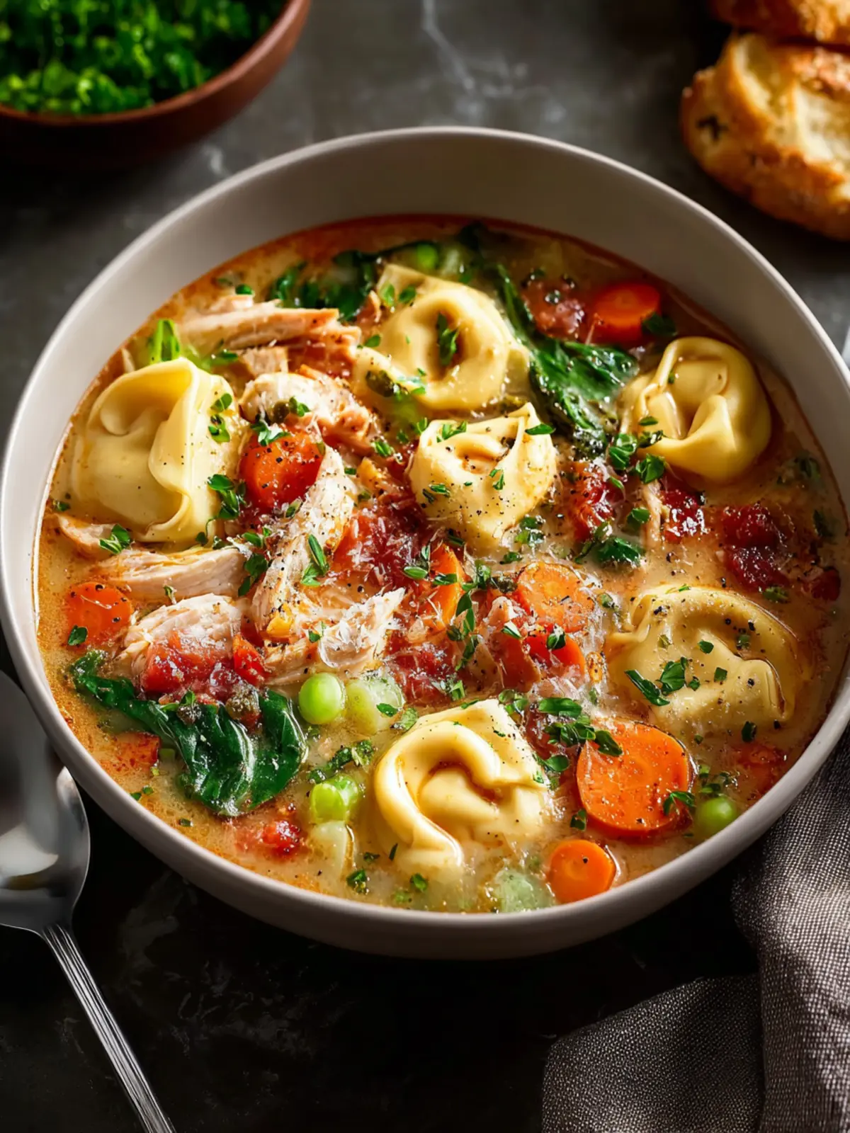 Nutrient-Packed: By incorporating protein, vegetables, and delicious tortellini, this soup ensures a balanced meal that’s both satisfying and healthy.