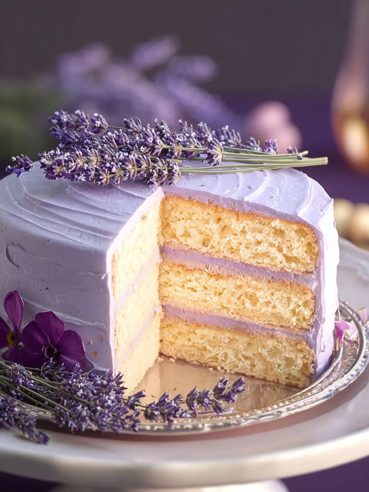 Aesthetically Pleasing: The light pastel hues of the cake topped with fresh lavender buds create a stunning visual that’s perfect for impressing guests. It’s almost too pretty to eat—almost!