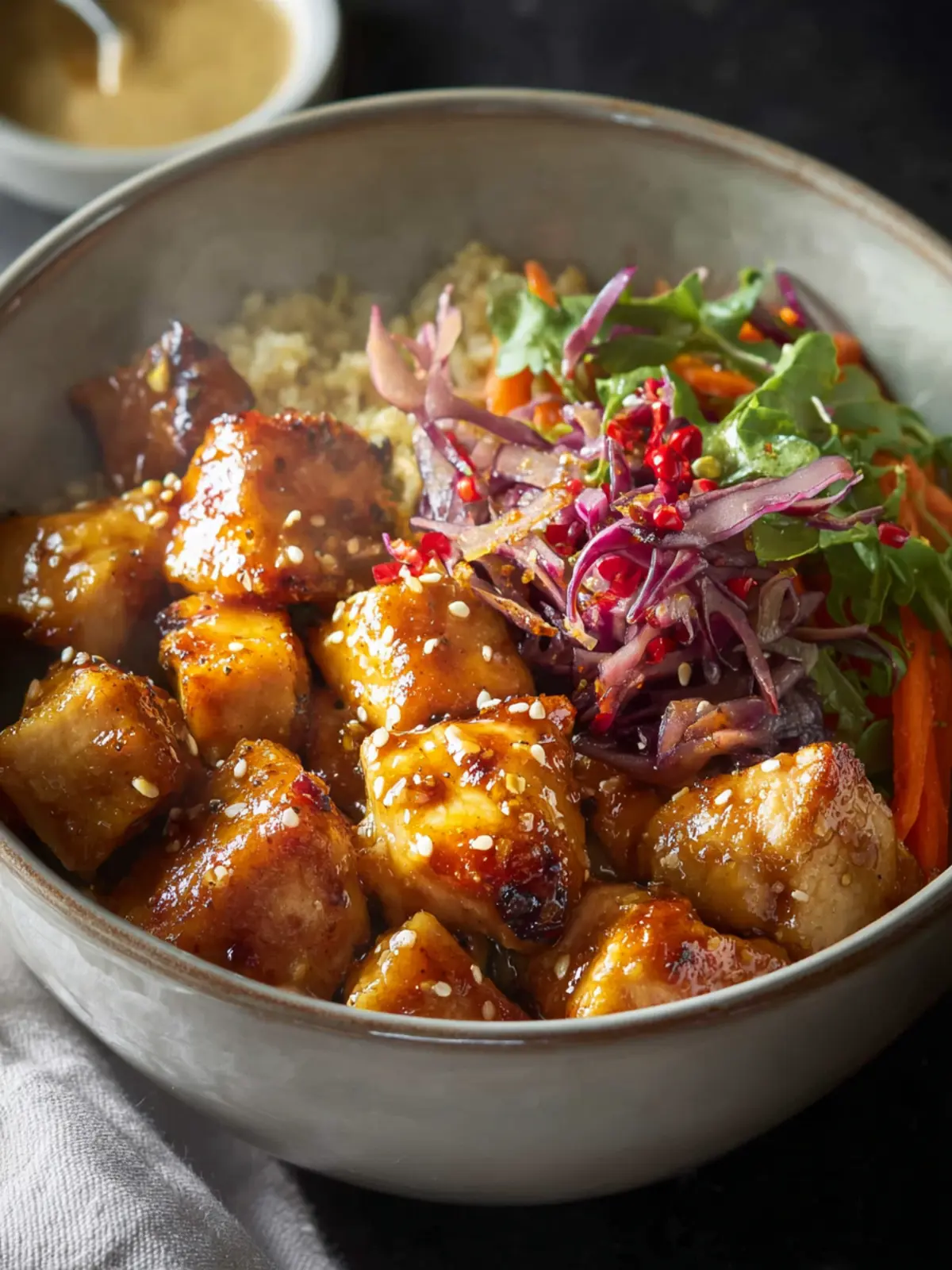 Rice or Quinoa: As the base of your bowl, these grains soak up the sauce beautifully. Opt for brown rice or quinoa for added fiber, making your meal hearty and satisfying.