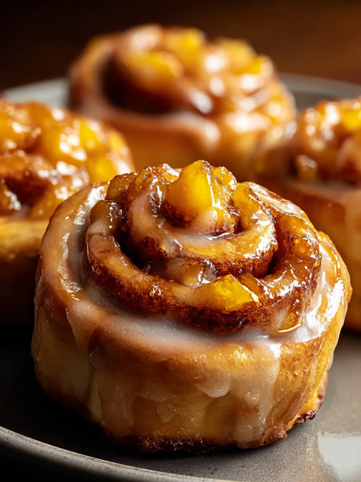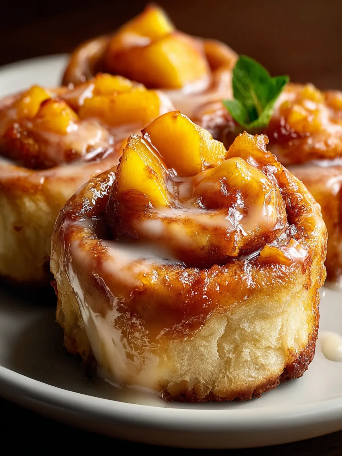 Delicious peach cinnamon rolls perfect for breakfast or dessert.