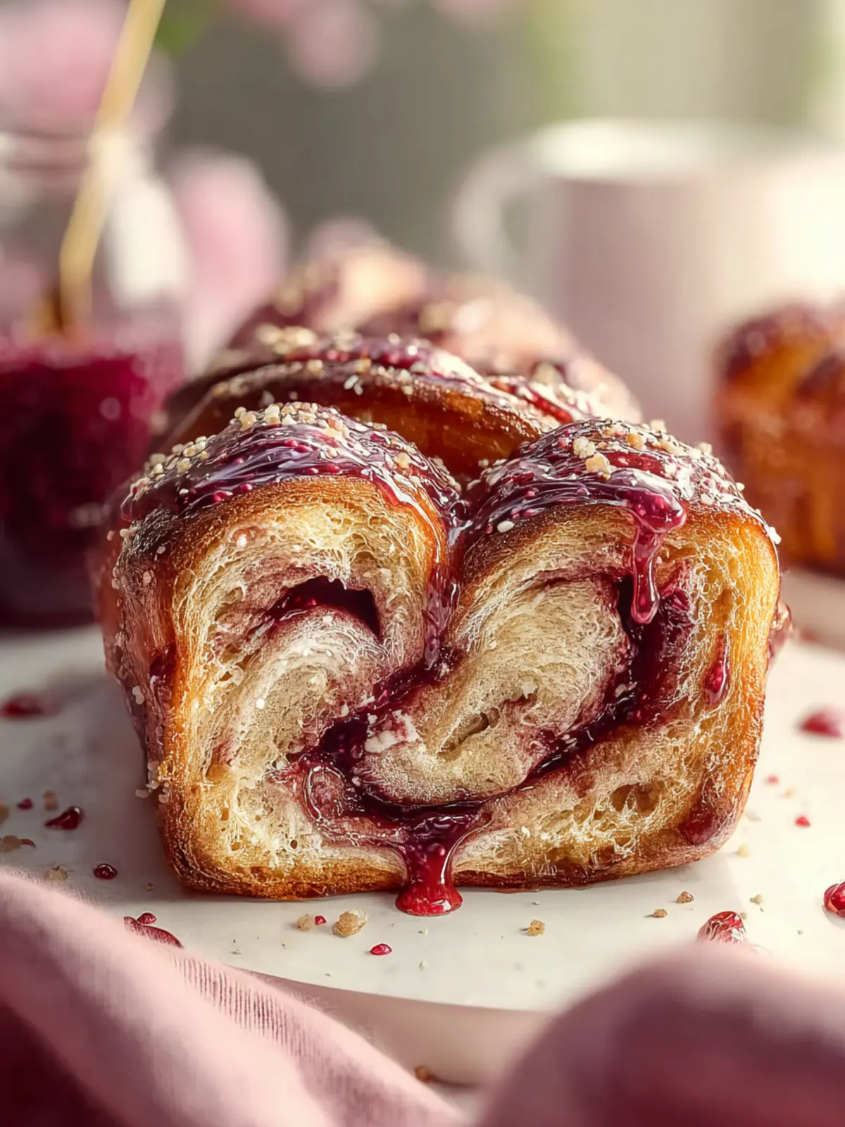 A delicious bread swirled with fruity jam, perfect for breakfast or dessert.