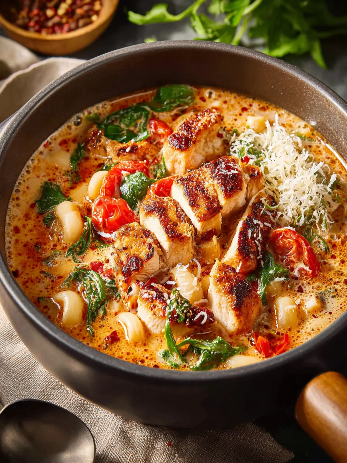 Don’t rush the sautéing stage! Caramelizing the onions and garlic until they’re golden enhances their natural sweetness and adds depth to your Marry Me Chicken Soup.