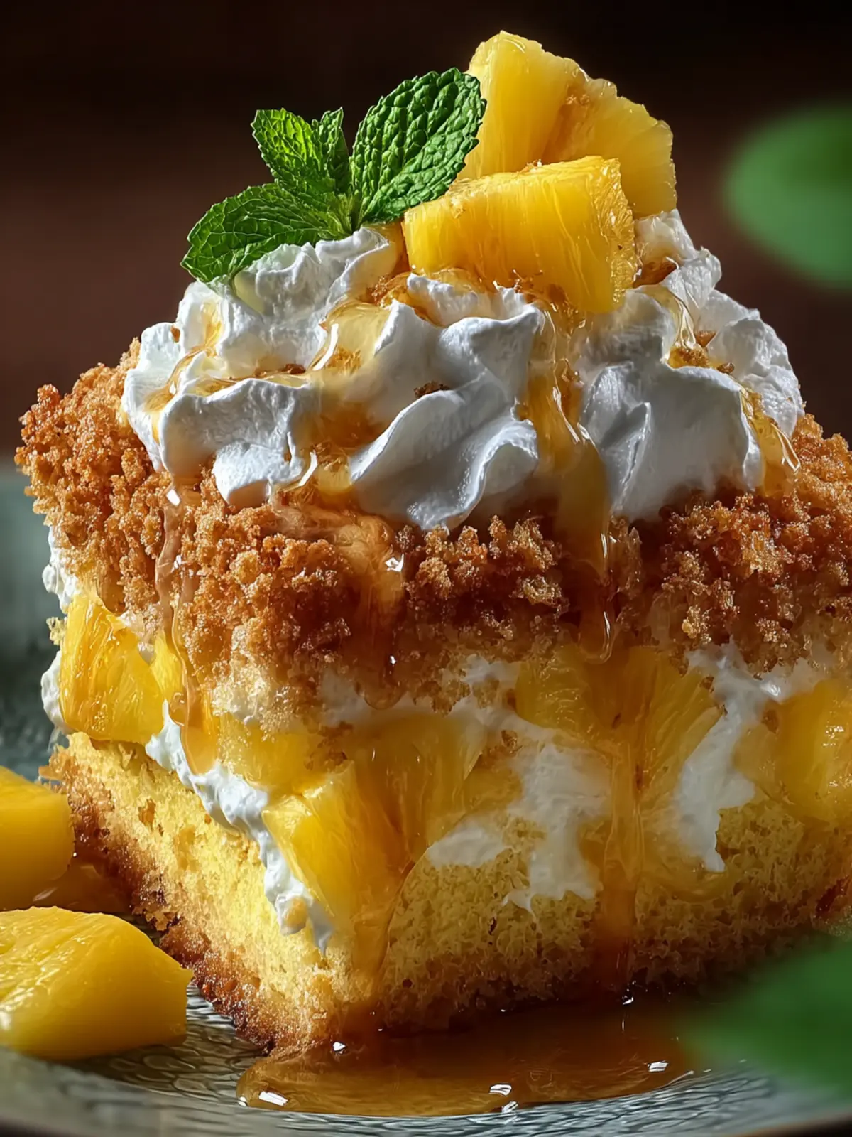 This cake is a blend of lightness, flavor, and texture. The angel food cake base gives it an airy, spongy structure, while the pineapple infuses a tropical sweetness. It stands out as a dessert that is both satisfying and refreshing.