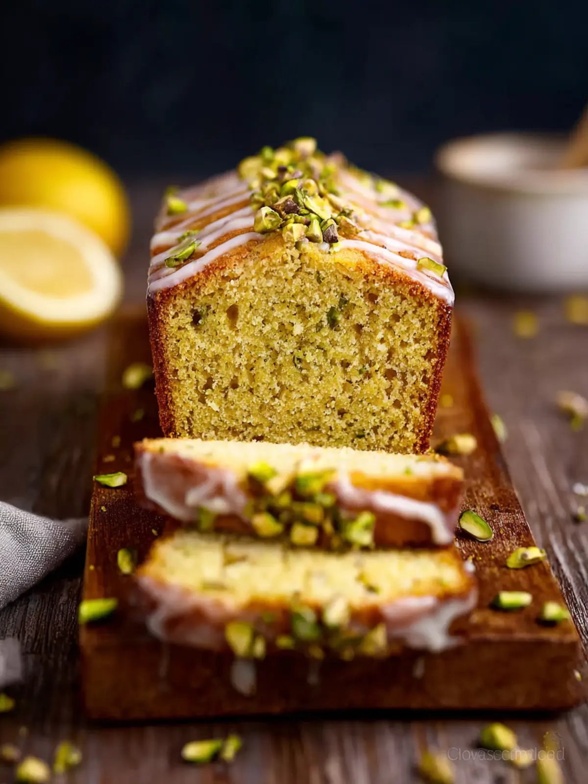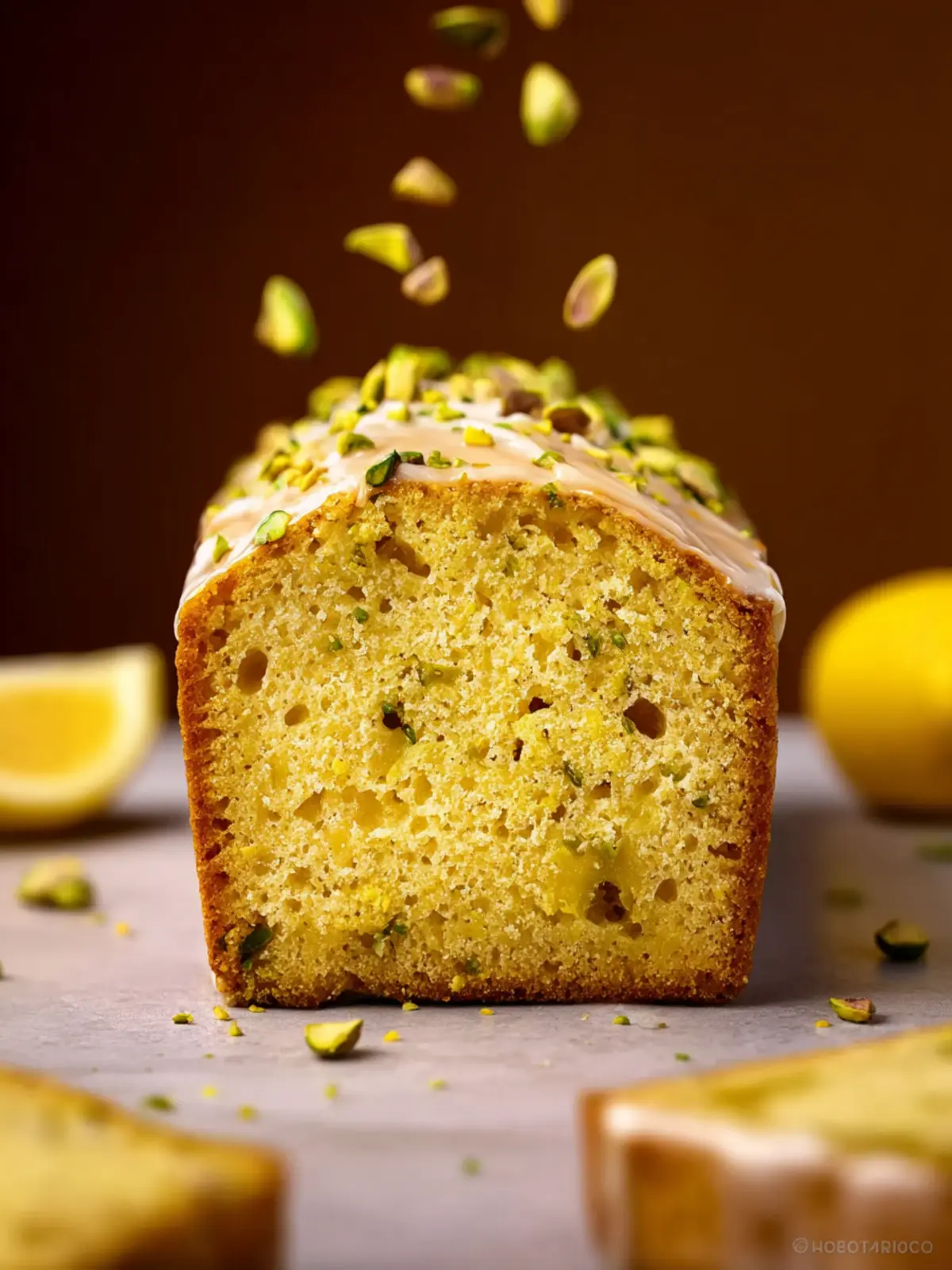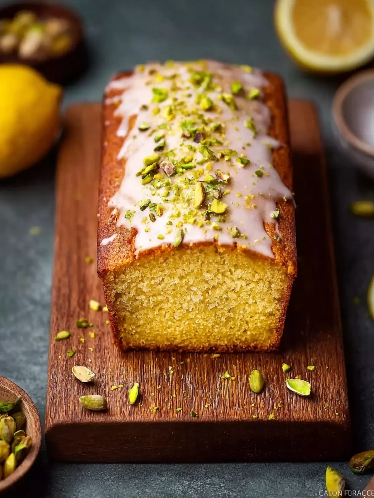 A delightful loaf filled with the flavors of pistachios and lemon, perfect for any occasion.