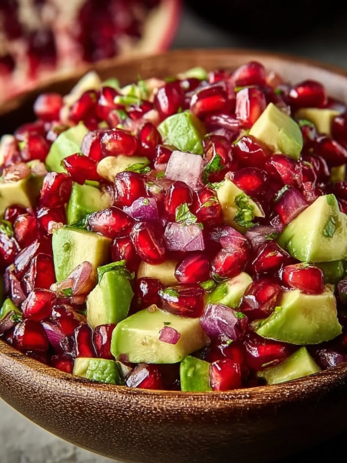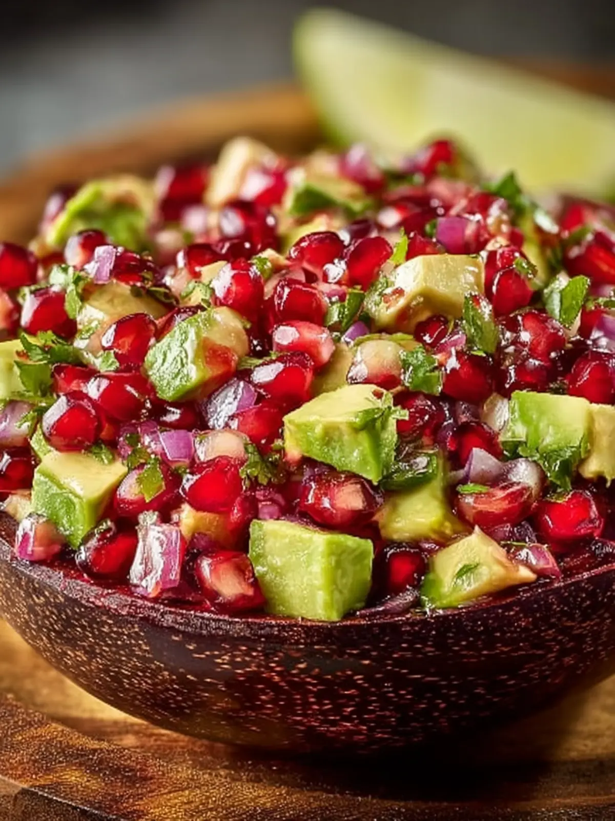 Vibrant Presentation: The eye-catching colors of red pomegranate, bright green avocado, and hints of cilantro create a dish that’s as appealing to the eyes as it is to the taste buds. It’s perfect for impressing guests at your next dinner party.