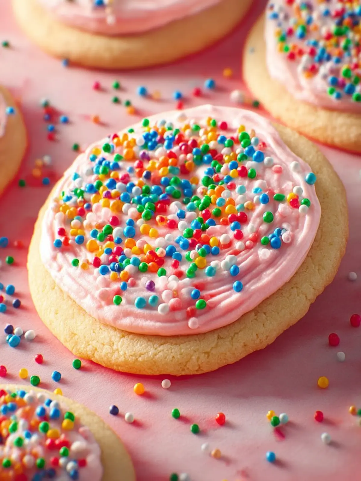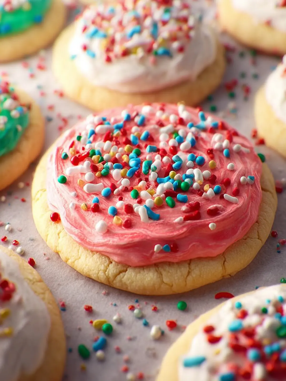 Finally, a sprinkle of rainbow sprinkles on top not only makes your soft batch frosted sugar cookies visually appealing but also adds a fun crunch that enhances the overall experience.