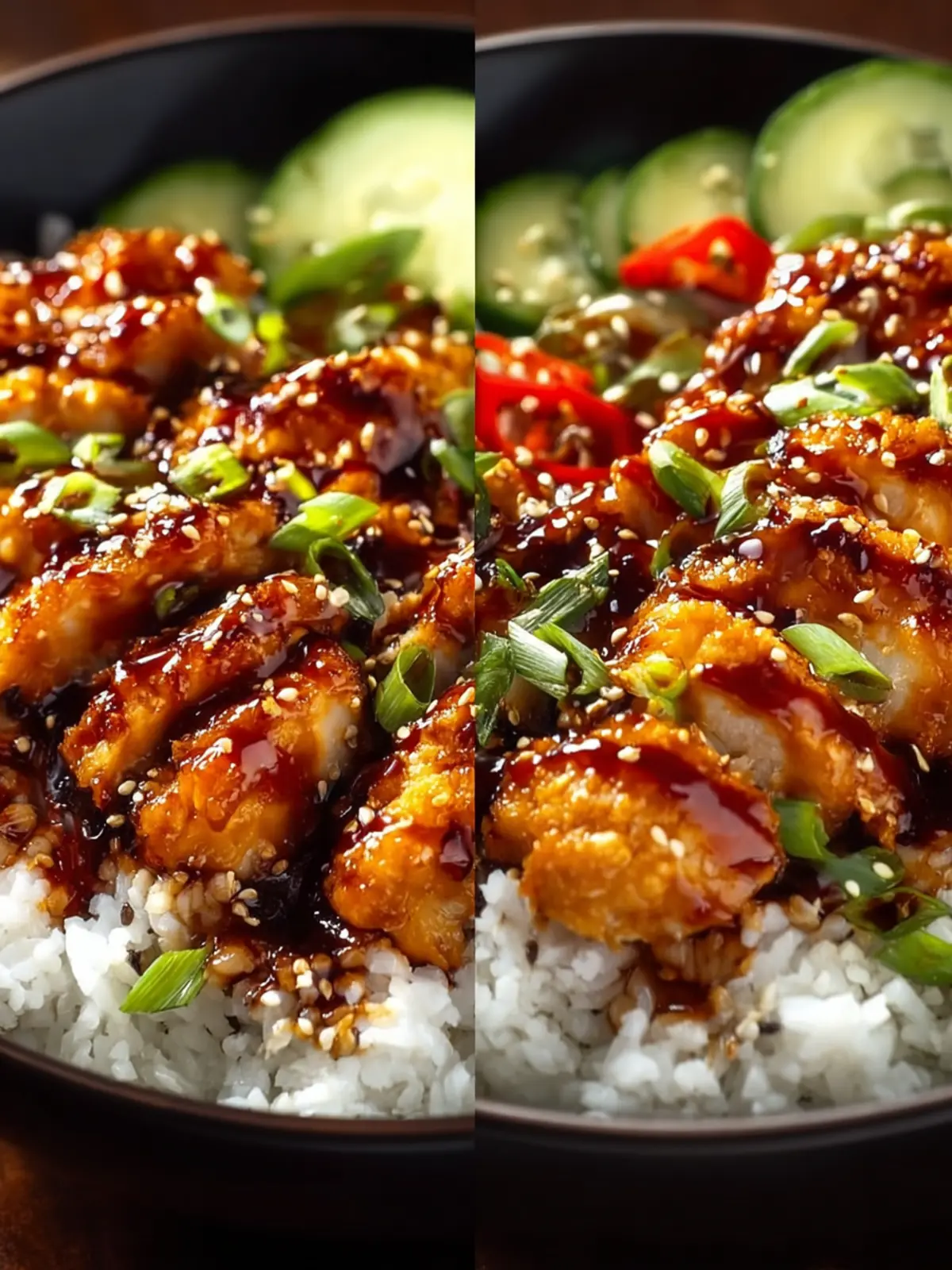4. Divide the cooked rice into bowls and top with the glazed chicken.