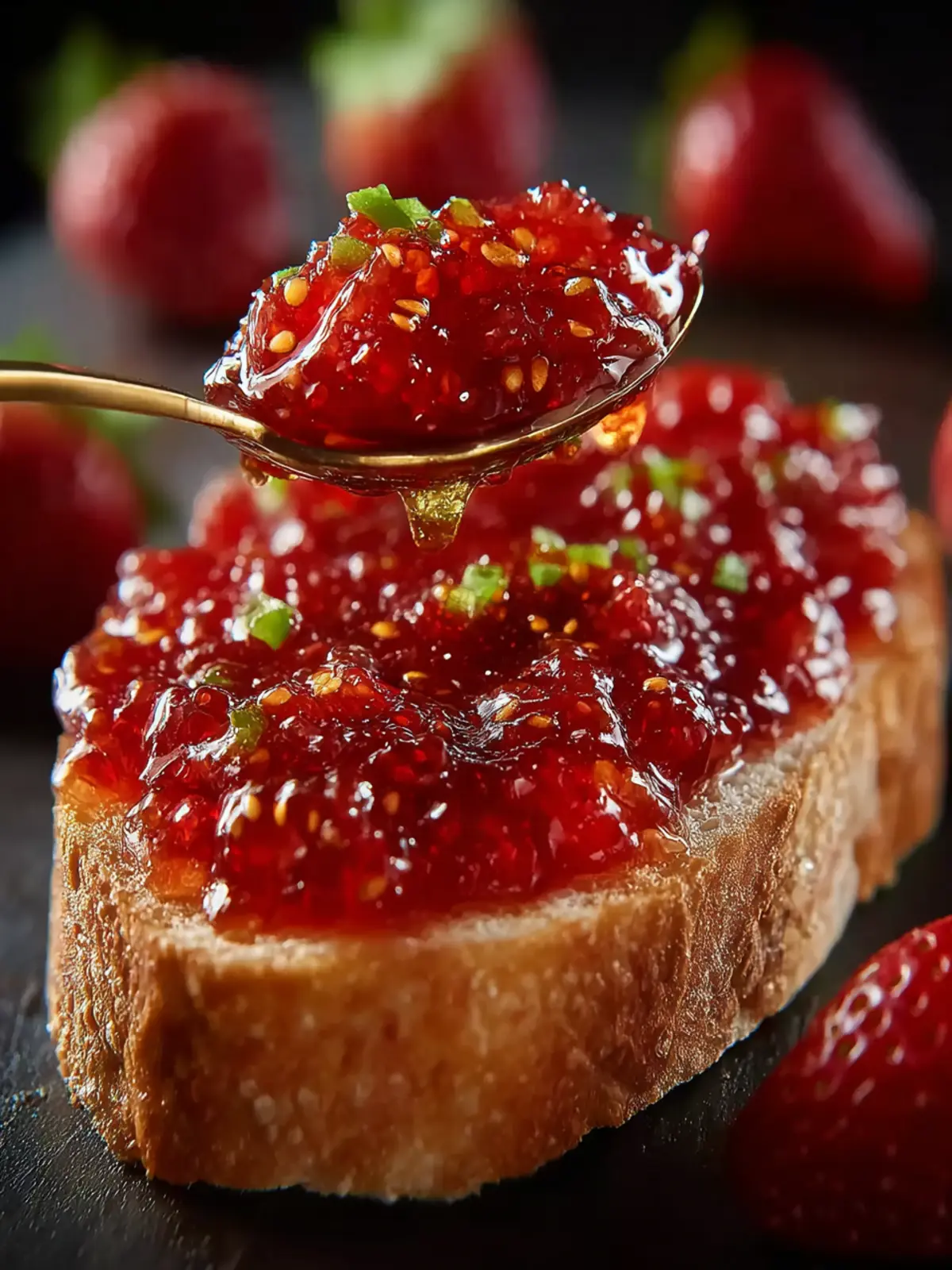 Imagine swapping strawberries for fresh peaches. The juicy sweetness of ripe peaches complements the honey and jalapeño wonderfully. Simply follow the same recipe, replacing strawberries with an equal amount of diced peaches for a new spin that adds a summer freshness to your morning toast.