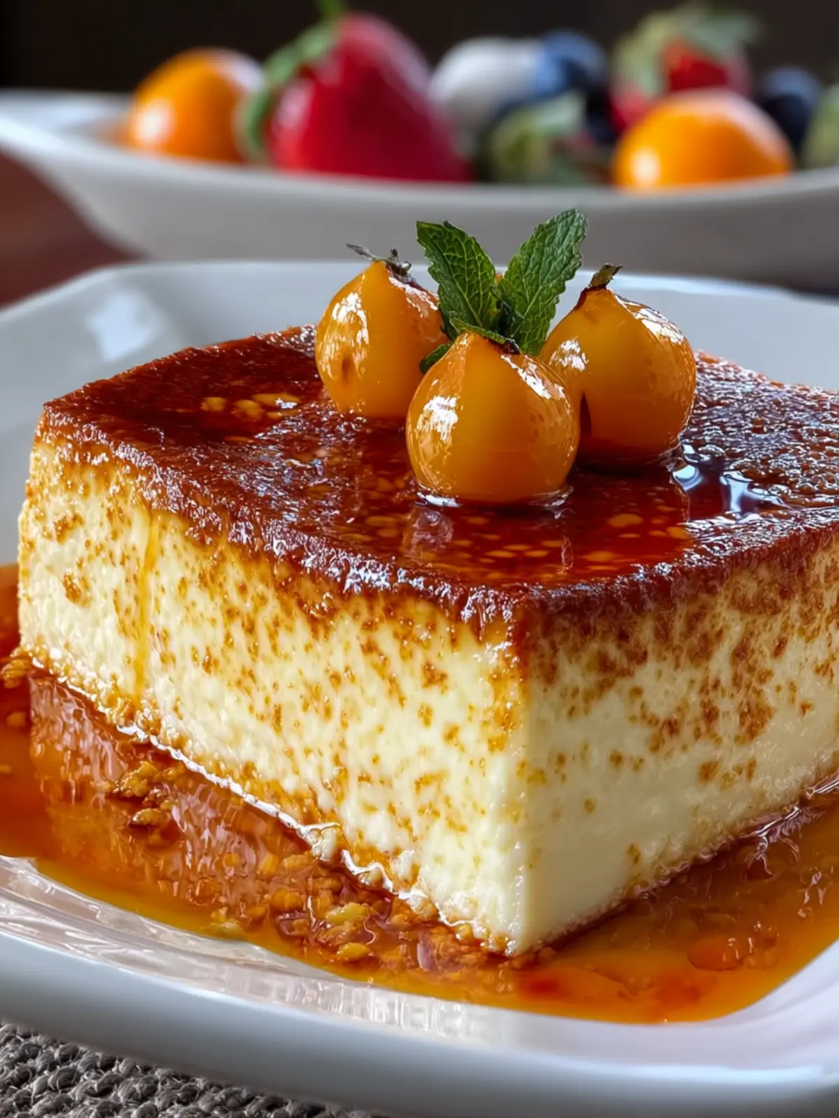 Garnish with Fresh Fruits: Enhance the flavor profile by adding slices of kiwi, strawberries, or mango. Not only do they brighten the dessert, but the acidity of the fruit beautifully complements the sweetness of the flan.