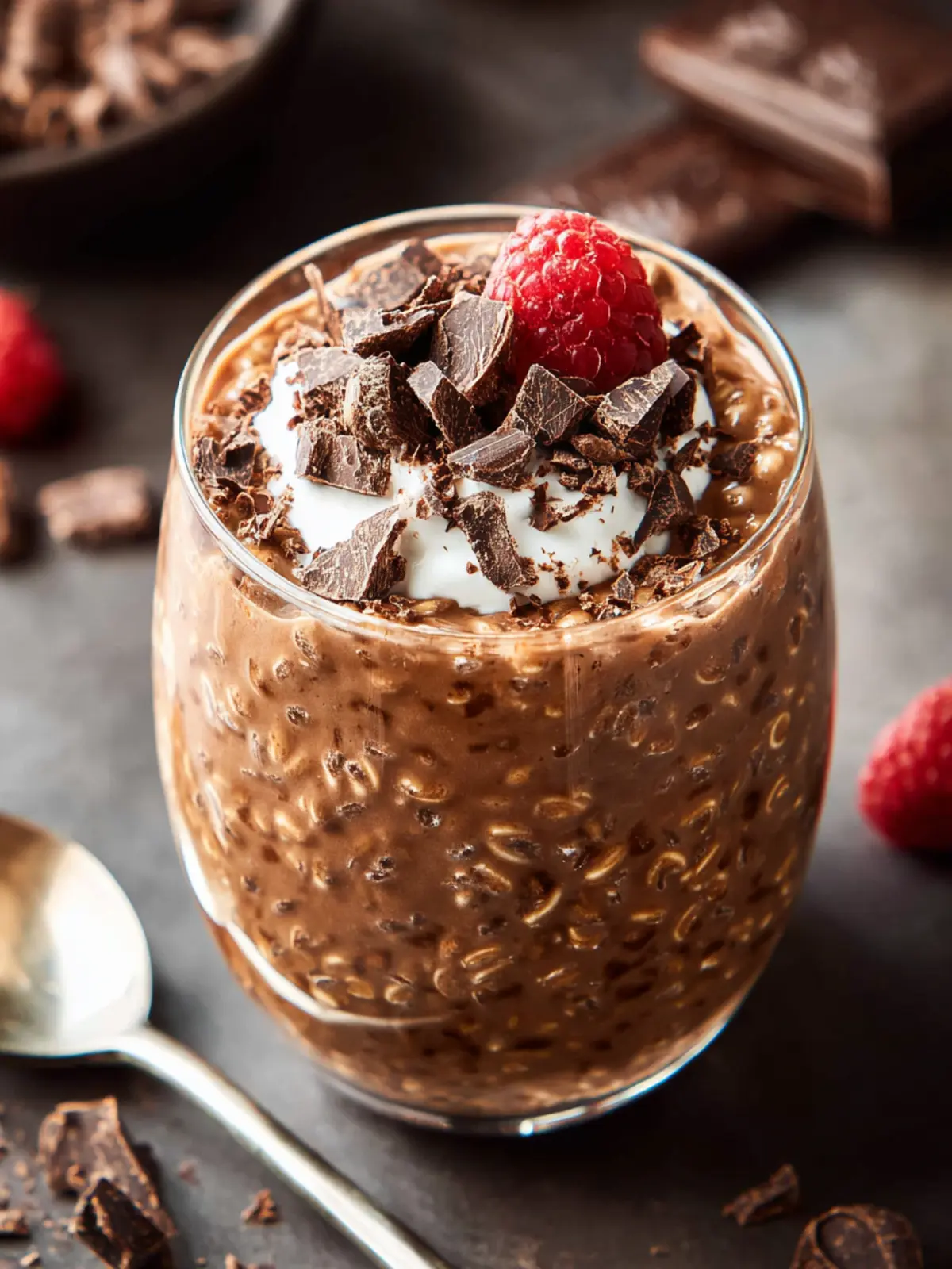 A delicious and healthy way to start your day with chocolate chia overnight oats.