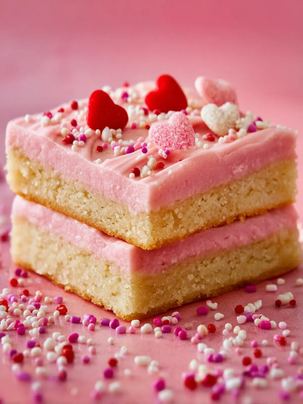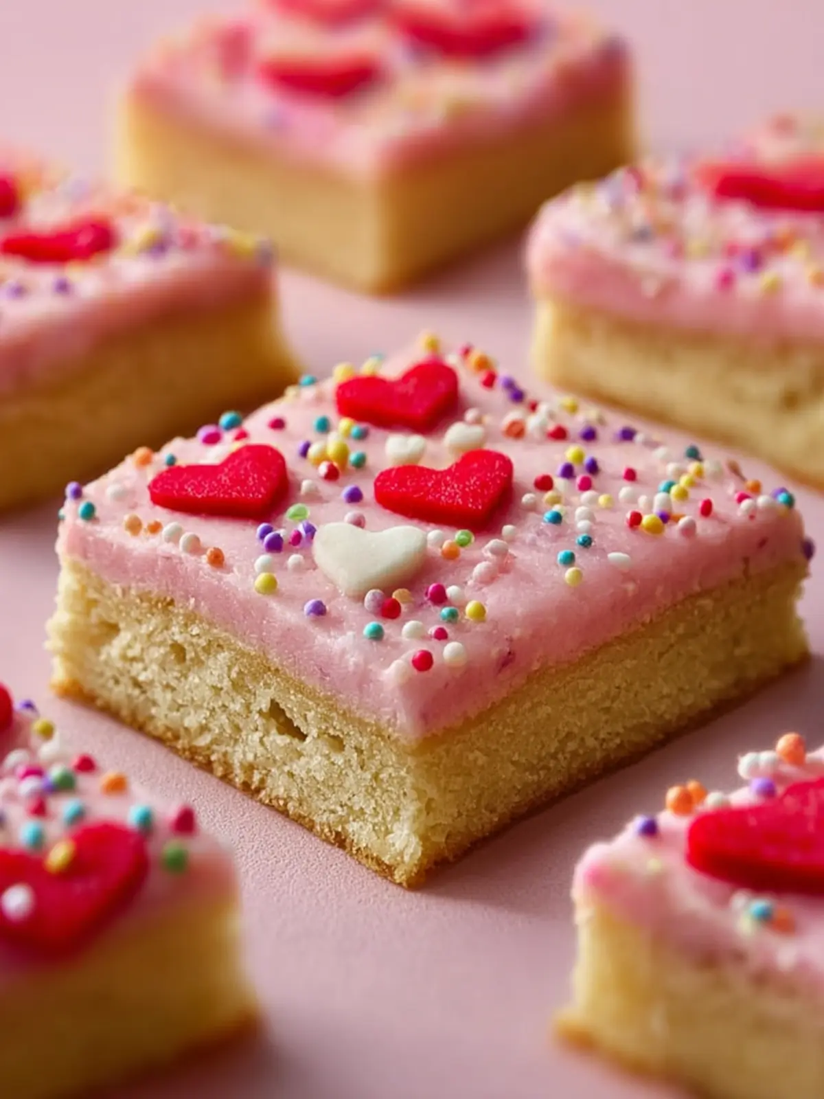 Visual Appeal: Topped with colorful frosting and heart-shaped sprinkles, these bars are a feast for the eyes. They’ll look gorgeous displayed on your dessert table, ready to impress your guests or that special someone.